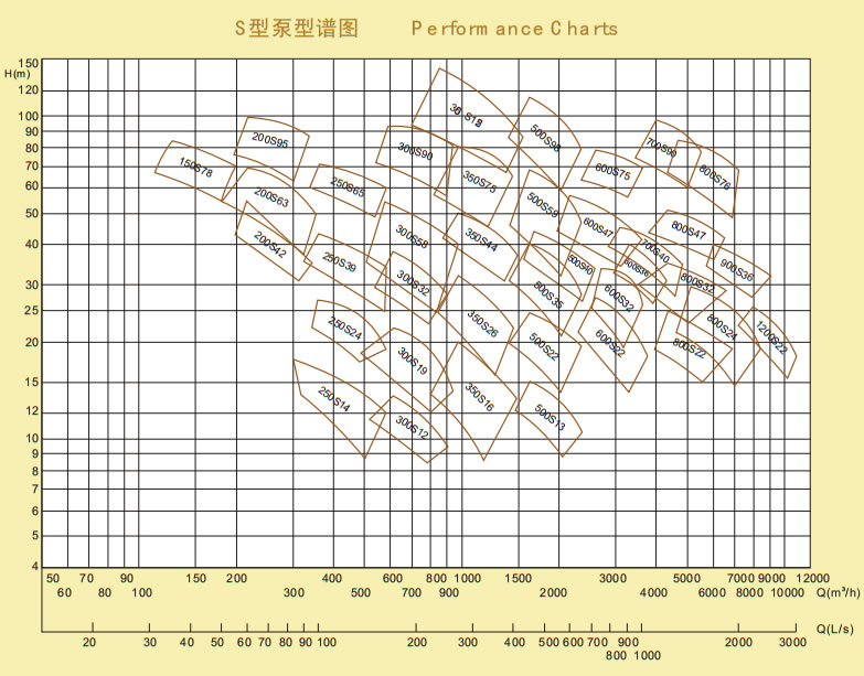 S型水平单级双吸中开式离心泵参数范围: